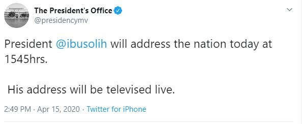 ފޮޓޯ: އަވަސް ކޮވިޑް19 އަށް މާލެއިން މީހަކު ޕޮޒިޓިވްވުމާއި ގުޅޭ ފަހުގެ މަޢުލޫމާތު އިބްރާހިމް ފަހީމް 15 އޭޕްރީލު 2020, ބުދަ, 11:59 މާލެއިން ކޮވިޑް19 އަށް މީހަކު ޕޮޒިޓިވް ވުމާއި ގުޅިގެން ރާއްޖޭގެ ޙާލަތު މިވަނީ ބަދަލުވެފައެވެ. ސަރުކާރުންވެސް ގިނަ ނިންމުންތަކެއް މިއަދު ނިންމާނެކަމަށް ބެލެވެއެވެ. މިކަންކަމުގެ އެންމެ ފަހުގެ ތަފްޞީލް މި ލައިވް ބްލޮގް މެދުވެރިކޮށް ގެނެސްދިނުމަށް ފައިނު އޮންލައިންގެ ޓީމުން މިގެންދަނީ މަސައްކަތް ކުރަމުންނެވެ، 15:34 15/04/2020 ކޯވިޑް-19 އާއި ގުޅިގެން ފުރަމާލެ ސަރަހައްދު 24 ގަޑިއިރަށް 'ބަންދު' ކުރުމަށް އެޗް.ޕީ.އޭ އިން ނިންމުމާއި ގުޅިގެން، ވެމްކޯއިން އެސަރަހައްދުގައި ފޯރުކޮށްދޭ އެންމެހާ ޚިދުމަތްތައް ވަގުތީ ގޮތުން މެދުކަނޑާލަން ނިންމައިފި (އިބްރާހިމް ފަހީމް/ޓެލެގްރާމް) 15:24 15/04/2020 ބޭންކް އޮފް މޯލްޑިވްސް ބްރާންޗްތަކާއި ސާވިސް ސެންޓަރުތައް މާދަމާ ބަންދުވާނެ (އިބްރާހިމް ފަހީމް/ޓެލެގްރާމް) 15:18 15/04/2020 މާލެ ސިޓީ "ލޮކްޑައުން" ހާލަތަކަށް ގެނެވިފައިވާ މި ދަނޑިވަޅުގައި، މާލެ ސިޓީގެ އެއްވެސް ސަރަހައްދެއްގައި ބަނދަރުކޮށްފައިވާ އެއްވެސް އުޅަނދެއްވެސް ފުރުމަކީވެސް މަނާކަމެއްކަމަށް އެޗްޕީއޭއިން ބުނެފި (އިބްރާހިމް ފަހީމް/ޓެލެގްރާމް) 15:05 15/04/2020 މާލެ ލޮކްޑައުން ކުރުމާއި ގުޅިގެން ލޮކްޑައުން ނިމެންދެން މާލެ ސަރަހައްދުގައި އެމްޓީސީސީން ފޯރުކޮށްދޭ ދަތުރުފަތުރުގެ އެންމެހާ ޚިދުމަތެއް މެދުކަނޑާލާފައިވާކަމަށް އެމްޓީސީސީން ބުނެފި (އިބްރާހިމް ފަހީމް/ޓެލެގްރާމް) 15:00 15/04/2020 ކ. ކާށިދޫއަށް އަރާފޭބުން މިހާރުވަނީ މަނާކުރެވިފައި - އެޗްޕީއޭ (އިބްރާހިމް ފަހީމް/ޓެލެގްރާމް) 14:59 15/04/2020 މިހާރު ގެއިނ ްބޭރުގައި ތިބި ފަރާތްތަކުންވެސް މިއަދުގެ ހަވީރު 3:30 ގެ ކުރިން ގެއަށް ވަޑައިގެންނެވުމަށް ފުލުހުން އެދިއްޖެ (އިބްރާހިމް ފަހީމް/ޓެލެގްރާމް) 14:56 15/04/2020 ރައީސް އޮފީހުގެ ޓްވީޓް (އިބްރާހިމް ފަހީމް/ޓެލެގްރާމް) 14:54 15/04/2020 މިއަދު 3:45 ގައި ރައީސް އިބްރާހީމް މުޙައްމަދު ޞާލިހް ޤައުމާއި މުޙާތަބު ކުރައްވާނެކަމަށް ރައީސް އޮފީހުން ބުނެފި (އިބްރާހިމް ފަހީމް/ޓެލެގްރާމް) 14:44 15/04/2020 އެޗްޕީއޭއިން ބުނެފައިވަނީ، ކ. ކާށިދޫ މޮނިޓަރިންއަށް ގެނައީ ކޮވިޑް19 އަށް ޕޮޒިޓިވްވި މީހަކު ޑައިރެކްޓް ކޮންޓެކްޓްވި މީހަކު ކާށިދޫއަށް ދަތުރު ކޮށްފައިވާތީ ކަމަށެވެ. (އިބްރާހިމް ފަހީމް/ޓެލެގްރާމް) 14:43 15/04/2020 ކ. ކާށިދޫ މޮނިޓަރިންގެ ޙާލަތަށް ގެނެސްފިކަން އެޗްޕީއޭއިން ކަށަވަރު ކޮށްދީފި (އިބްރާހިމް ފަހީމް/ޓެލެގްރާމް) 14:37 15/04/2020 އެޗްޕީއޭއިން ދެންމެ ނެރުނު ބަޔާން (އިބްރާހިމް ފަހީމް/ޓެލެގްރާމް) 14:37 15/04/2020 ލައިވް ފޮޓޯ (އިބްރާހިމް ފަހީމް/ޓެލެގްރާމް) 14:34 15/04/2020 މާލެ 24 ގަޑިއިރަށް ލޮކްޑައުން ކޮށްފިކަން އެޗްޕީއޭއިން އިޢުލާން ކޮށްފި (އިބްރާހިމް ފަހީމް/ޓެލެގްރާމް) 14:31 15/04/2020 މީސްމީޑިއާއާއި ޕްރެސް ކޮންފަރެންސްގެ ޒަރިއްޔާއިން އެންމެ ފަހުގެ މަޢުލޫމާތު އެޗްޕީއޭގެ ފަރާތުން ފޯރުކޮށްދެމުން ގެންދާނެ ކަމަށާއި އެހެންކަމުން ޞައްޙަކަން ކަށަވަރުނުވާ ޚަބަރާއި މަޢުލޫމާތު ނުފެތުރުމަށް އެޗްޕީއޭއިން ދެންމެ ކުރި ޓްވީޓެއްގައި އެދިއްޖެ (އިބްރާހިމް ފަހީމް/ޓެލެގްރާމް) 14:22 15/04/2020 މިއީ ދަތިވަގުތެއް ކަމަށާއި އެހެންނަމަވެސް، ކެތްތެރިކަމާއިއެކު ތިބުމަށާއި ޞިއްޙީ މާހިރުންނާއި އިދާރާތަކުން ދޭ އިރުޝާދު އަޑު އަހާ އެކަންކަމަށް ސަމާލުކަން ދިނުމަށް މަބުރޫކް ވިދާޅުވެއްޖެ (އިބްރާހިމް ފަހީމް/ޓެލެގްރާމް) 14:17 15/04/2020 މާލޭގައި ތިބި އެކި ފަރާތްތަކުން އަތޮޅުތެރޭގެ ރަށްރަށަށް ފުރަމުންދާތީ އެކަން ގިނަ ބަޔަކު ދަނީ ކުއްވެރިކުރަމުން (އިބްރާހިމް ފަހީމް/ޓެލެގްރާމް) 13:43 15/04/2020 ލައިވް ފޮޓޯ (އިބްރާހިމް ފަހީމް/ޓެލެގްރާމް) 13:42 15/04/2020 ގޭގައި ތިބެގެން އެސްޓީއޯ ސްޕަރމާކެޓުން ބޭނުންވާ ހުރިހާ އެއްޗެއް ގަނެވޭނެ ކަމަށާއި ތޮއްޖެހިގެން އެއްޗެހި ގަންނަން ނުދިޔުމަށް އެސްޓޯއޯއިން އެދިއްްޖެ (އިބްރާހިމް ފަހީމް/ޓެލެގްރާމް) 13:38 15/04/2020 އެމްއެންޑީއެފ